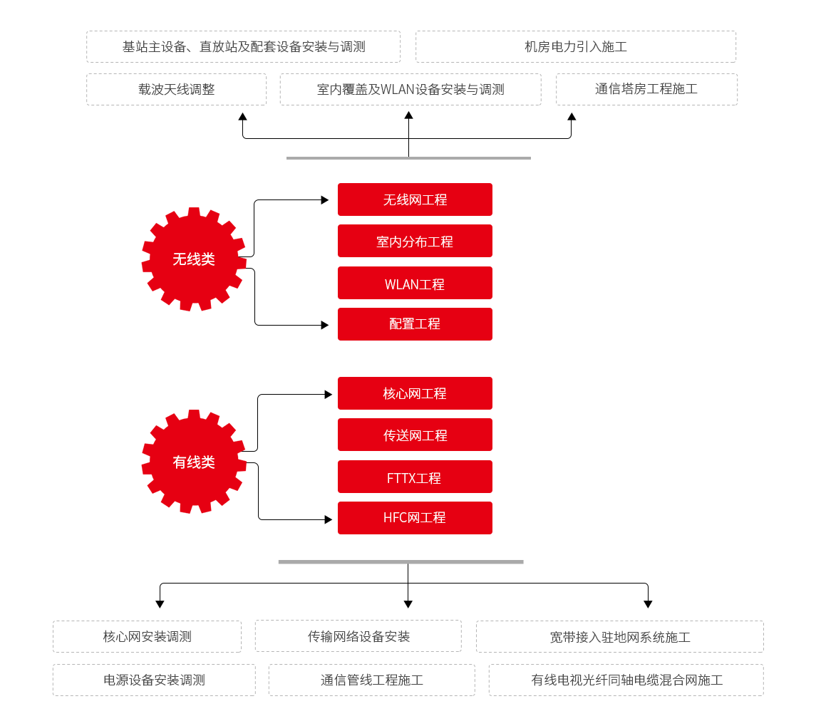 能夠提供通信建設(shè)的全專業(yè)服務(wù),業(yè)務(wù)范圍包括核心網(wǎng)工程、傳送網(wǎng)工程、FTTX工程、HFC網(wǎng)工程、無(wú)線網(wǎng)工程、室內(nèi)分布及WLAN工程等專業(yè)。施工內(nèi)容包含核心網(wǎng)設(shè)備安裝調(diào)測(cè)、電源設(shè)備安裝調(diào)測(cè)、傳輸網(wǎng)絡(luò)設(shè)備安裝調(diào)測(cè)、基站主設(shè)備安裝調(diào)試、直放站及配套設(shè)備安裝調(diào)測(cè)、室內(nèi)覆蓋及WLAN設(shè)備的安裝調(diào)測(cè)、寬帶接入駐地網(wǎng)、系統(tǒng)集成施工、有線電視光纖同軸電纜混合同施工、通信管線工程施工、載波及天線調(diào)整等;為客戶提供多元化施工解決方案,以及優(yōu)質(zhì)的全方位服務(wù)。